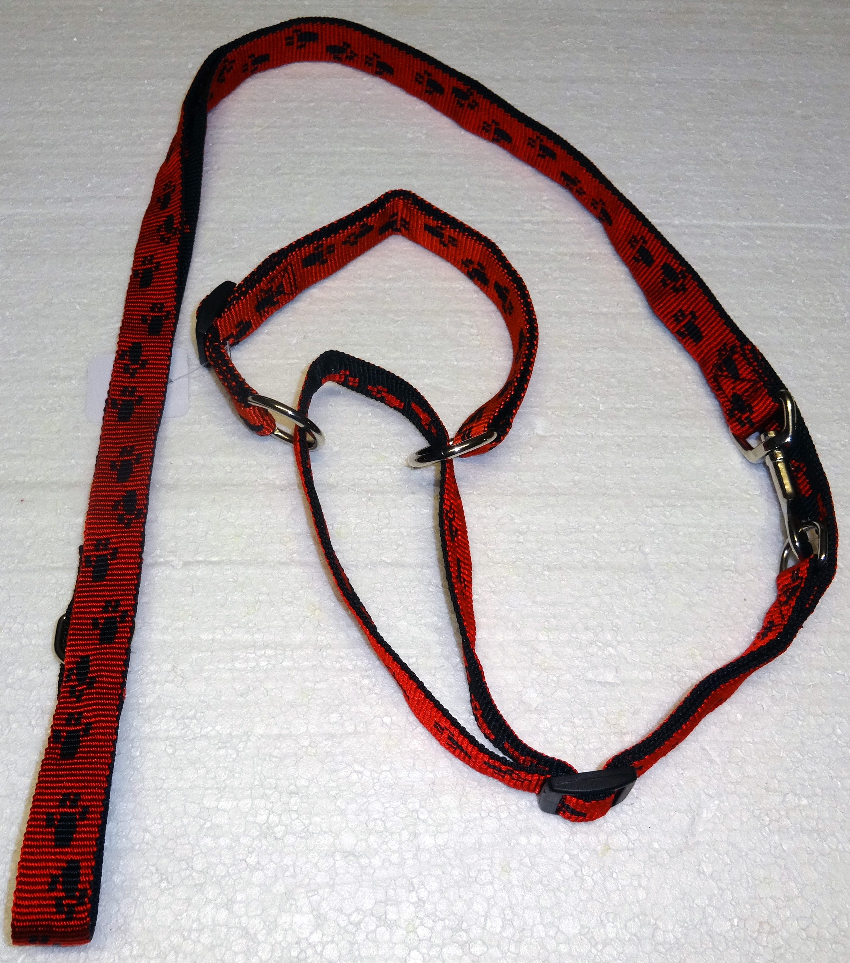 Agilityleine Pfotenband rot mit schwarzen Pfoten 20mm 160cm mit Bolzenhaken
