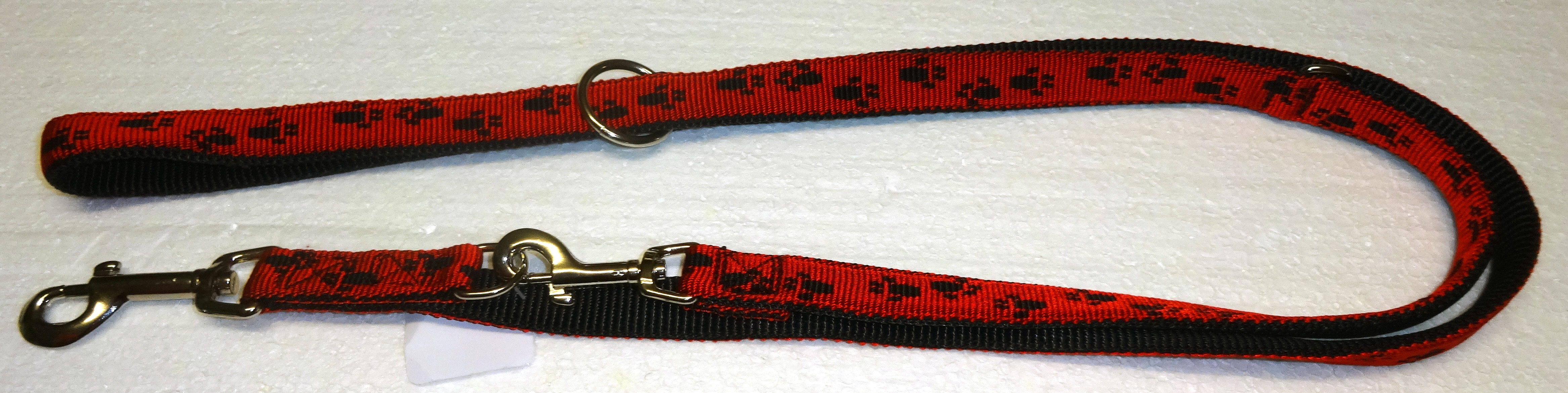 Führleine Pfotenband rot mit schwarzen Pfoten doppelgebuggt 20mm 180cm