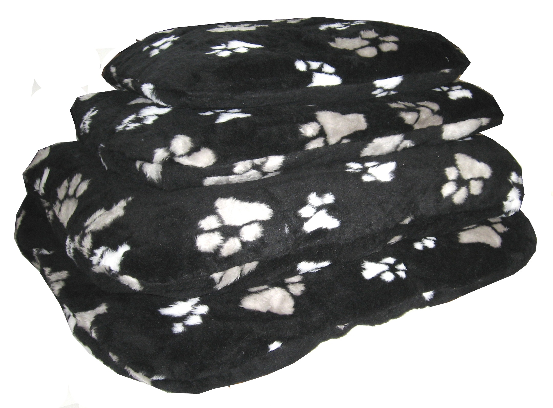 Schaumstoffkissen rechteckig mit Plüschbezug schwarz mit Pfoten 52/36/8cm