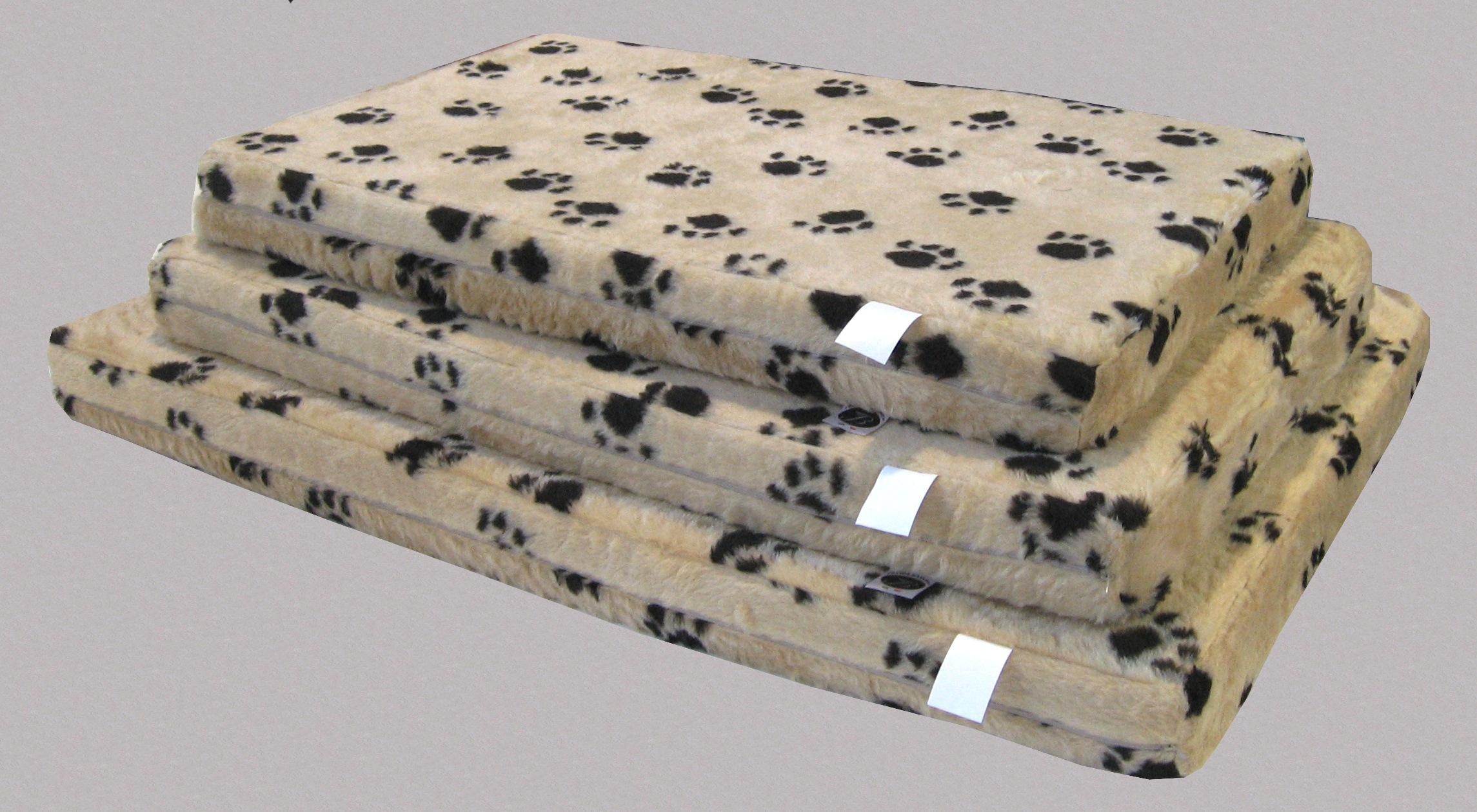 Schaumstoffmatratze mit Plüschbezug beige mit schwarzen Pfoten 91x56x8cm