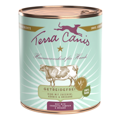 Terra Canis GETREIDEFREI-Menüs weisen einen hohen Fleischanteil auf, ergänzt durch viel gesundes, ballaststoffreiches Gemüse, Obst und Kräuter. Zusätze wie Seealge, Mineralerde, Blütenpollen, Andensalz und Bierhefe liefern zahlreiche, natürliche Vitamine und Mineralstoffe. Das enthaltene hochverdauliche, cholesterin- und glutenfreie Kokosmehl ist ein wahres Wundermehl. Es gilt als eine der ergiebigsten Ballaststoffquellen, ist sanft zum Darm und enthält ein breites Angebot an wichtigen Aminosäuren. Rapsöl mit seinem hohen Gehalt an Omega-3-Fettsäuren rundet die GETREIDEFREI-Menüs ideal ab. Geeignet sind diese Menüs für alle gesunden Hunde, deren Halter auf eine artgerechte, getreidefreie Ernährung setzen, sowie für Hunde mit Unverträglichkeiten gegen Getreide bzw. für Hunde, die aus medizinischen Gründen getreidefrei ernährt werden sollten.