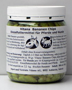 Bananen geschält, geschnitten und schonend getrocknet (ohne Zuckerzusatz). Die Vitana- Bananen Chips eignen sich speziell zur Belohnung, aber auch zur Bereicherung, Ergänzung und als Aufwertung der täglichen Nahrung. Die Vitana- Bananen Chips sind gesund und wohltuhend und schmecken vorzüglich. Inhalt ohne Konservierungsmittel.