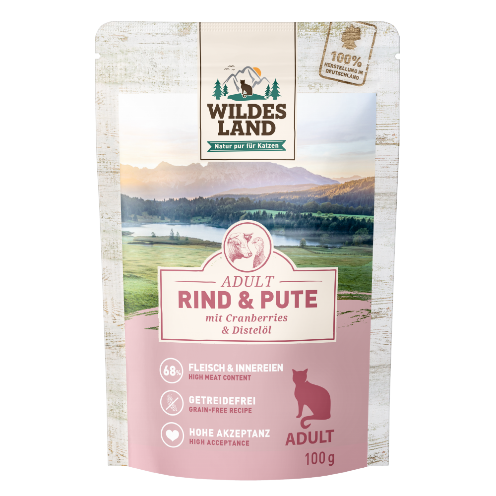 Wildes Land Cat Classic Adult Rind und Pute ist ein leckeres und proteinreiches Nassfutter mit hohem Fleischanteil für Katzen aller Rassen.